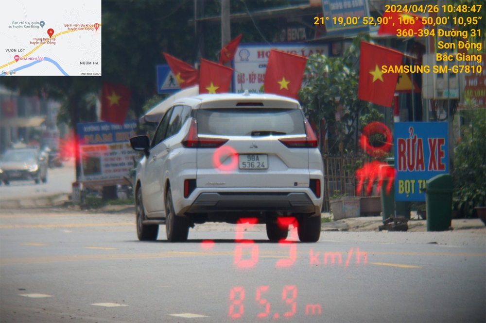 Trên tuyến QL31 thị trấn An Châu (Sơn Động) phát hiện 12 trường hợp chạy quá tốc độ quy định trong khu vực đông dân cư, cụ thể: