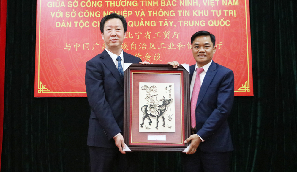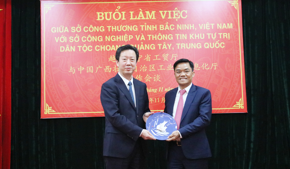 Tại buổi làm việc, các đại biểu nghe giới thiệu về tiềm năng, thế mạnh, định hướng phát triển của tỉnh Bắc Ninh. Hai bên cũng trao đổi, thúc đẩy mối quan hệ hợp tác giữa hai tỉnh Bắc Ninh và Quảng Tây, nhất là trong các lĩnh vực trọng điểm như công nghệ thông tin, chế tạo trang thiết bị cao cấp, ô tô năng lượng mới, chế biến thực phẩm…