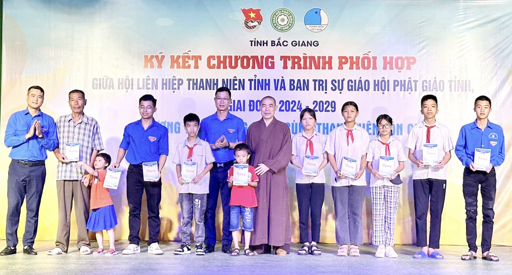 Dịp này, Tỉnh đoàn, Hội LHTN tỉnh trao 10 suất quà cho đoàn viên, thanh, thiếu niên, học sinh tôn giáo có hoàn cảnh khó khăn trên địa bàn huyện Lạng Giang (mỗi suất quà trị giá 500 nghìn đồng). Tại buổi lễ, các đại biểu, đoàn viên thanh niên còn được nghe thuyết pháp về “Đạo hiếu”.