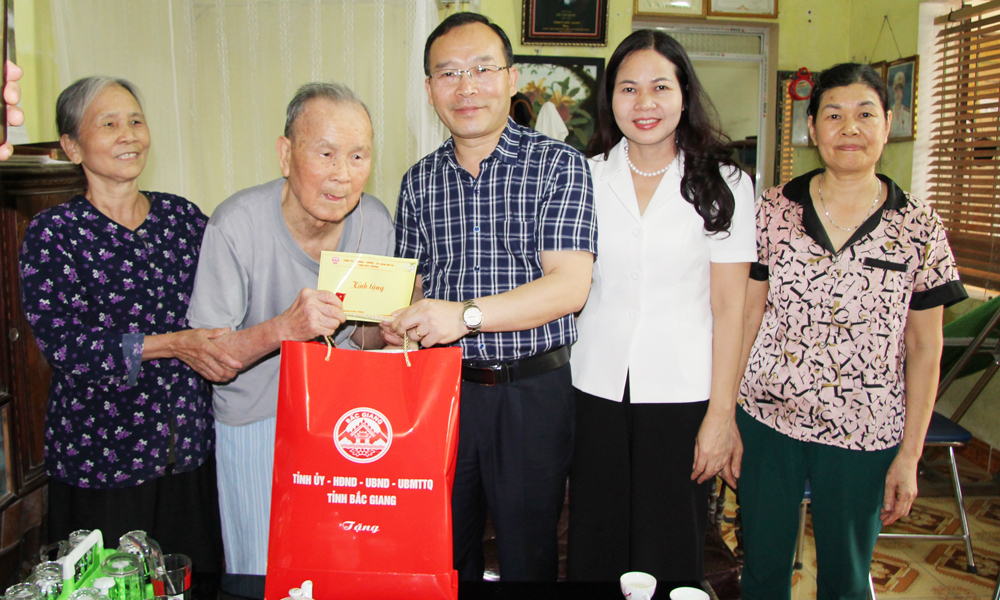Thay mặt đoàn công tác, đồng chí Trần Văn Tuấn trao 2 suất quà của Tỉnh ủy - HĐND - UBND - Uỷ ban MTTQ tỉnh cho CCB Ngô Quý Tĩnh (97 tuổi đời, 70 tuổi Đảng) ở thôn Bến, xã Đồng Việt và ông Phạm Văn Bắc (93 tuổi), cựu TNXP ở tổ dân phố Nguyễn, thị trấn Tân An. Mỗi suất quà trị giá 2 triệu đồng (gồm 1,5 triệu đồng tiền mặt và phần quà trị giá 500 nghìn đồng).