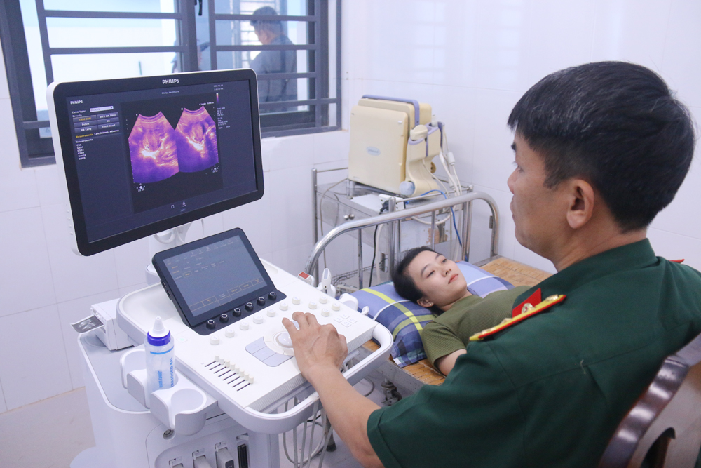 Bác sĩ Quân y khám sức khỏe cho người dân tổ 4, ấp Bãi Ngự, đặc khu Thổ Châu, tỉnh An Giang. |
