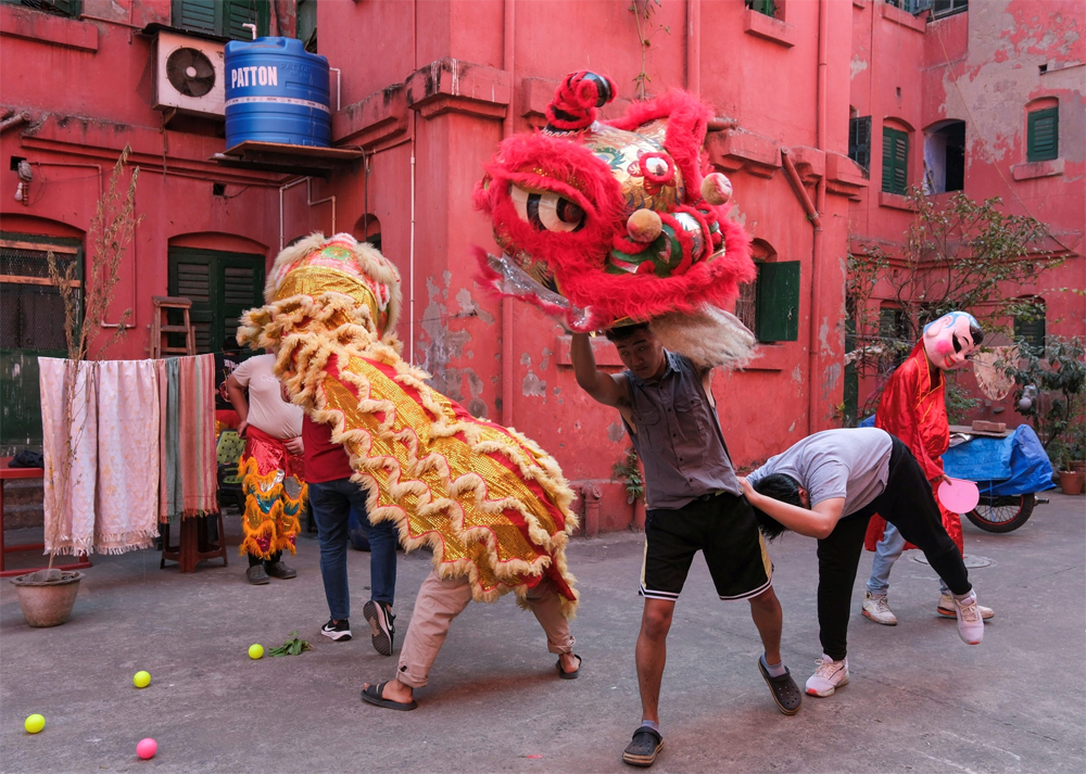 Các thành viên của nhóm múa lân Shining Star đang luyện tập để chuẩn bị cho lễ đón Tết Nguyên đán sắp tới tại Kolkata, Ấn Độ vào ngày 15/2.