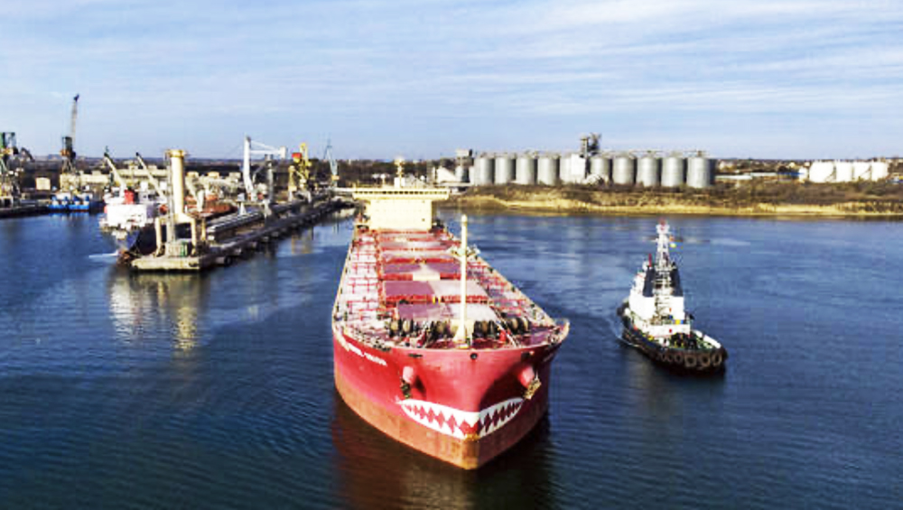 Một tàu chở ngô khởi hành từ Chernomorsk, Vùng Odessa, miền Nam Ukraine. |