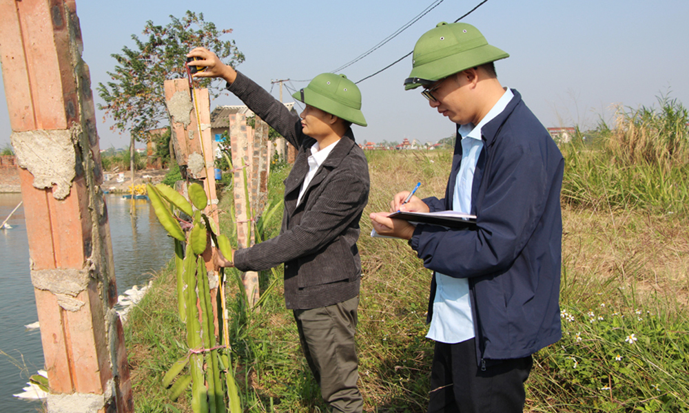 Kiểm đếm đất trang trại tại thôn Bùi, xã Lương Tài. |