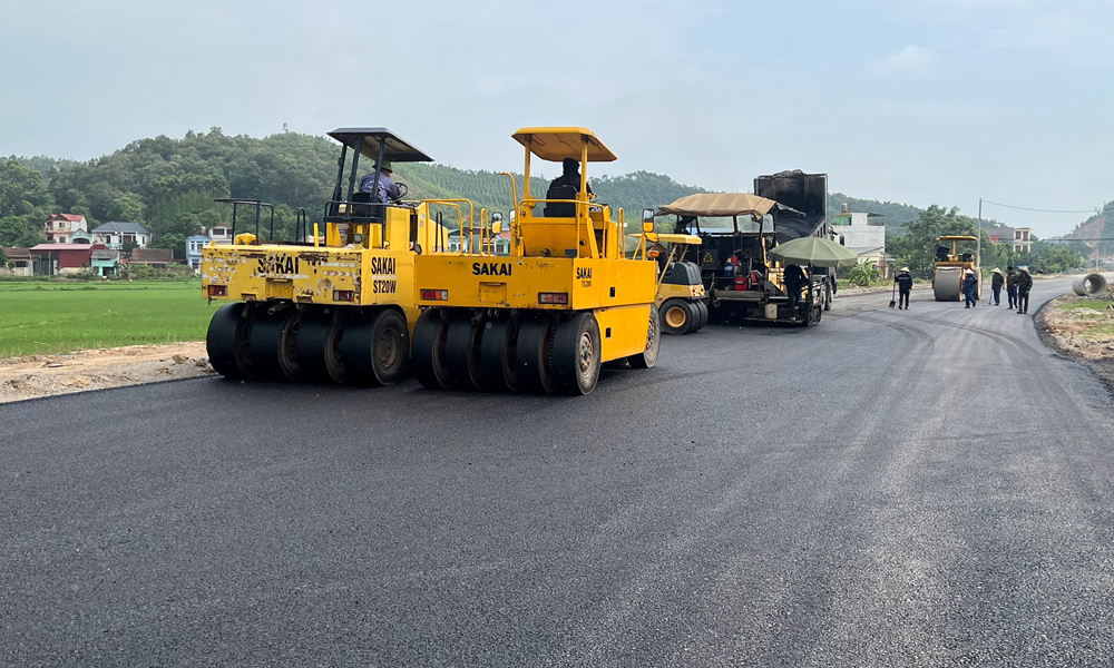 Trải nhựa áp phan tuyến đường từ Cổ Đèo đi đường vành đai Đông Bắc TP Bắc Giang, đoạn qua xã Nghĩa Trung. |