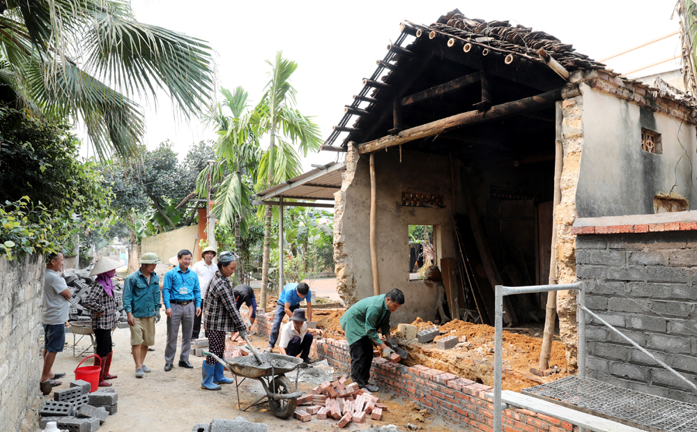 Người dân thôn Hạ, xã Thượng Lan tháo dỡ công trình để hiến đất làm đường ngõ. |