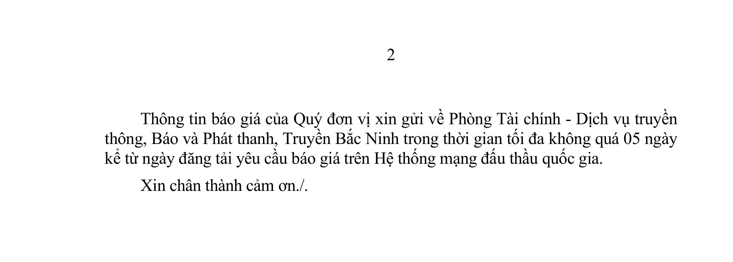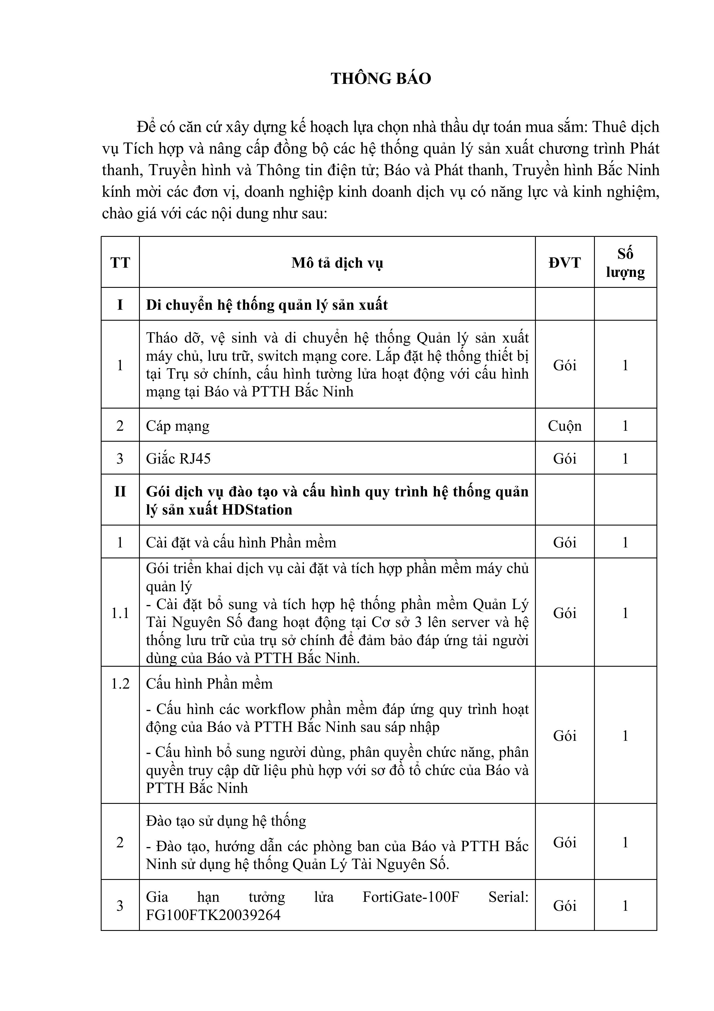 Thông báo về việc chào giá dịch vụ tích hợp và nâng cấp đồng bộ các hệ thống quản lý sản xuất chương trình Phát thanh, Truyền hình và Thông tin điện tử