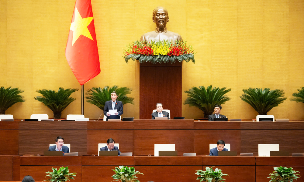 Dưới sự điều hành của Phó Chủ tịch Quốc hội Nguyễn Khắc Định, Quốc hội họp phiên toàn thể tại Hội trường, nghe các nội dung sau: Bộ trưởng Bộ Công an Lương Tam Quang, thừa ủy quyền của Thủ tướng Chính phủ trình bày Báo cáo công tác phòng, chống tội phạm và vi phạm pháp luật năm 2025; Viện trưởng Viện kiểm sát nhân dân tối cao Nguyễn Huy Tiến trình bày Báo cáo công tác năm 2025 của Viện trưởng Viện kiểm sát nhân dân tối cao; Chánh án Tòa án nhân dân tối cao Nguyễn Văn Quảng trình bày Báo cáo công tác của Tòa án nhân dân năm 2025; Bộ trưởng Bộ Tư pháp Nguyễn Hải Ninh, thừa ủy quyền của Thủ tướng Chính phủ trình bày Báo cáo về công tác thi hành án năm 2025.