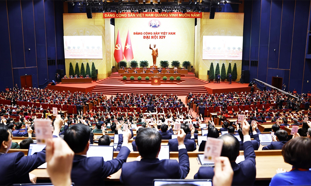 Đại biểu biểu quyết thông qua Nghị quyết Đại hội XIV của Đảng. |