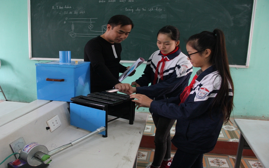 Không chỉ vậy, em còn cải tiến, lắp đặt thêm hệ thống đèn chiếu sáng, mạch cảm biến ánh sáng nên máy hoạt động vào ban đêm. Cô giáo Bùi Thị Mừng, Phó Giám đốc Trung tâm nói: “Chúng tôi tạo điều kiện về thời gian, bố trí giáo viên, hỗ trợ kinh phí từ 3-7 triệu đồng để các em nghiên cứu, sáng tạo”.