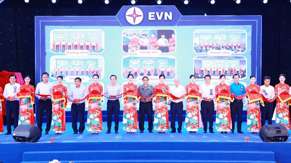 Ngay sau đó, Thủ tướng dự lễ và thực hiện nghi thức gắn biển đường dây tải điện 500 kV mạch 3 Quảng Trạch - Phố Nối là công trình chào mừng Kỷ niệm 95 năm Ngày thành lập Công đoàn Việt Nam (28/7/1929 – 28/7/2024) và 70 năm Ngày truyền thống ngành Điện lực Việt Nam (21/12/1954 - 21/12/2024).