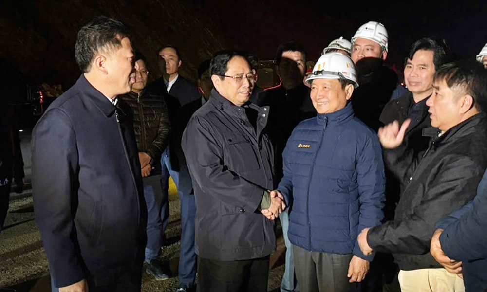 Tại công trường, Thủ tướng ghi nhận, biểu dương tinh thần trách nhiệm, sự nỗ lực vượt khó của các đơn vị thi công, tư vấn, giám sát đã quyết tâm bám công trường, duy trì tiến độ dự án trong những ngày Tết Nguyên đán cổ truyền của dân tộc. Thủ tướng cũng ghi nhận, cổ vũ đội ngũ kỹ sư, công nhân, người lao động đã không nghỉ Tết để thi công 3 ca 4 kíp đảm bảo tiến độ dự án.