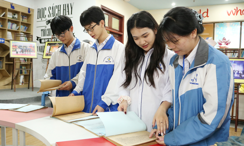 Học sinh tìm hiểu thông tin tại Thư viện Bắc Ninh số 2. |