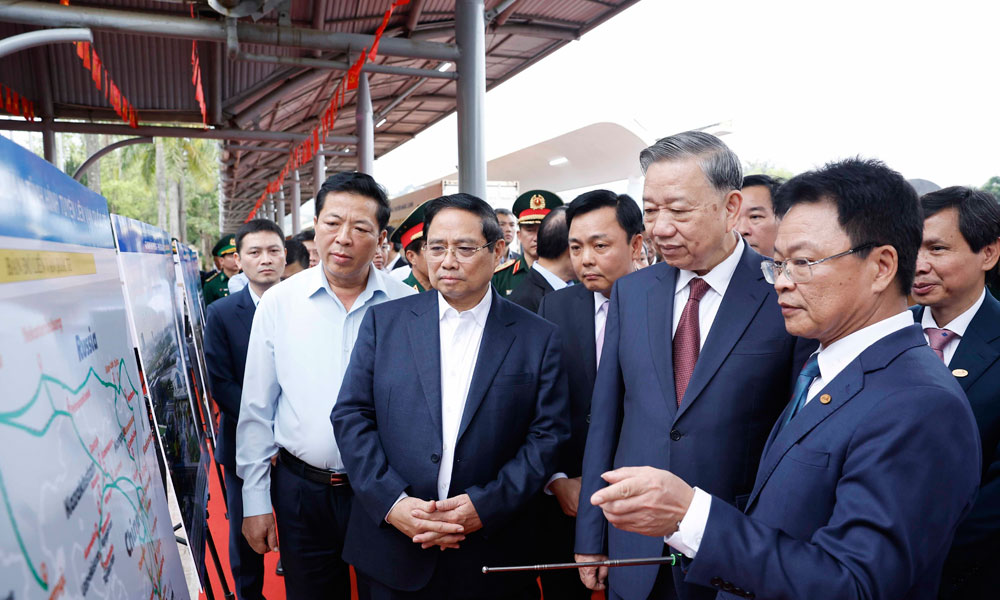 Tổng Bí thư Tô Lâm, Thủ tướng Phạm Minh Chính và đoàn công tác Trung ương kiểm tra thực địa tại ga Đồng Đăng. |