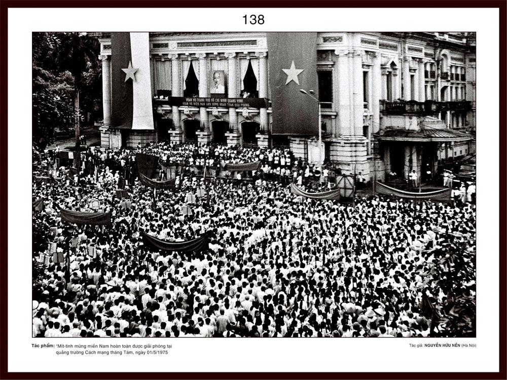 Tại lễ khai mạc triển lãm, Ban tổ chức giới thiệu một số tác phẩm tiêu biểu gắn liền với những thời khắc lịch sử trọng đại của dân tộc. Đó là tác phẩm “Mít-tinh mừng miền Nam hoàn toàn giải phóng tại Quảng trường Cách mạng Tháng Tám, ngày 1/5/1975” của nghệ sĩ nhiếp ảnh Nguyễn Hữu Nền (Hà Nội) – tác phẩm tư liệu quý giá ghi lại niềm vui non sông thu về một mối; tác phẩm “Đoàn tàu Thống Nhất – Nối liền hai miền Nam Bắc” của nghệ sĩ nhiếp ảnh Trần Uông Sơn (Hà Nội) – biểu tượng sinh động cho đất nước liền một dải, được người dân thành phố Hồ Chí Minh nồng nhiệt chào đón ngày 4/1/1977.