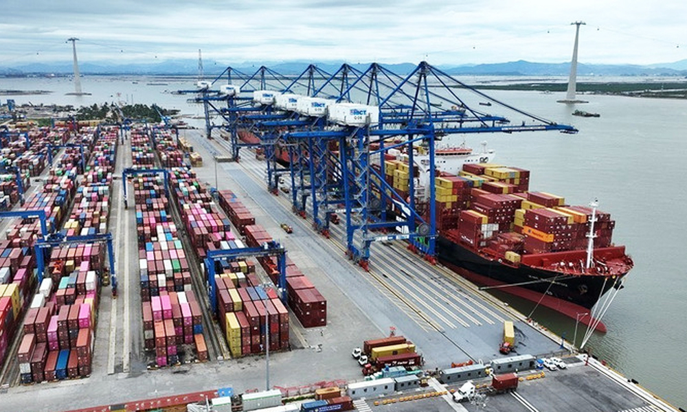 Hàng hóa xuất nhâp khẩu ở cảng container Lạch Huyện, thành phố Hải Phòng. |