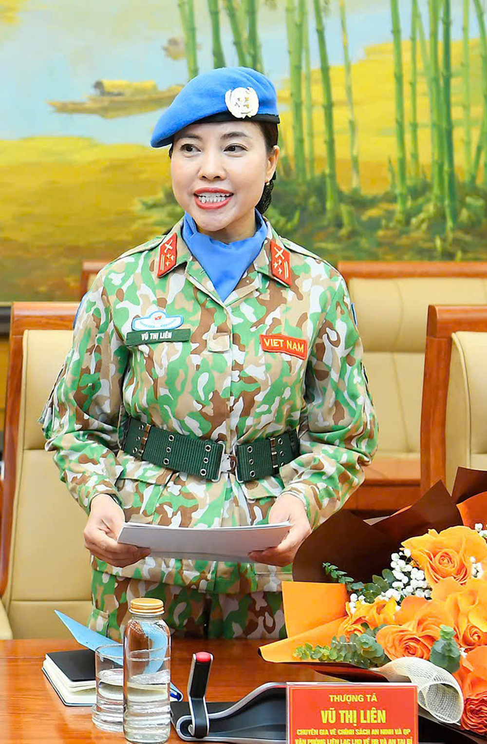 Sáng 31/12/2025, tại Bộ Quốc phòng, Thượng tá Vũ Thị Liên đã được Thủ trưởng Bộ Quốc phòng trao Quyết định đi thực hiện nhiệm vụ Giữ gìn hòa bình Liên Hợp quốc tại Brussels (Bỉ). Đây là nữ sĩ quan đầu tiên của Việt Nam trúng tuyển vào vị trí chuyên môn tại Văn phòng Liên Hợp quốc - một dấu mốc có ý nghĩa đặc biệt, thể hiện bước phát triển mới của lực lượng gìn giữ hòa bình Việt Nam. Trong môi trường mới tại Brussels, chị sẽ đảm nhiệm vai trò phân tích, tư vấn chiến lược, phối hợp chính sách giữa Liên Hợp quốc và Liên minh châu Âu trong lĩnh vực an ninh - quốc phòng, góp phần nâng cao hiệu quả các phái bộ gìn giữ hòa bình trên toàn thế giới.