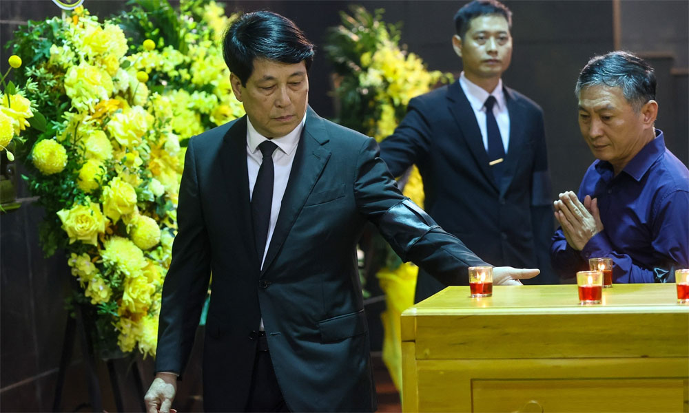 Thường trực Ban Bí thư Lương Cường đến viếng bà Đặng Bích Hà - Phu nhân Đại tướng Võ Nguyên Giáp. |