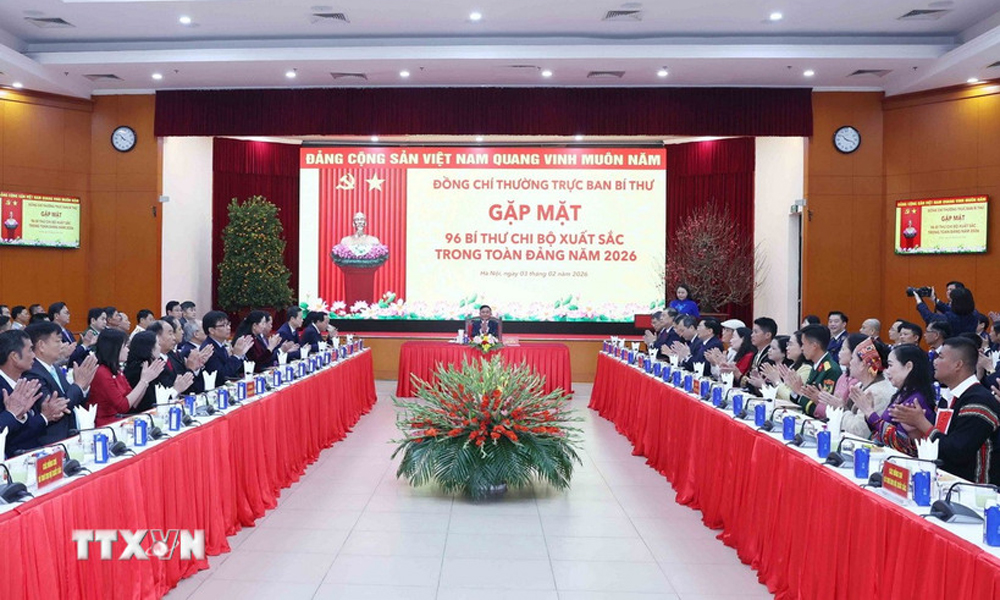 Kỷ niệm 96 năm Ngày thành lập Đảng Cộng sản Việt Nam (3/2/1930-3/2/2026), sáng 3/2, tại Hà Nội, đồng chí Trần Cẩm Tú, Ủy viên Bộ Chính trị, Thường trực Ban Bí thư gặp mặt 96 đồng chí Bí thư chi bộ xuất sắc trong toàn Đảng năm 2026.