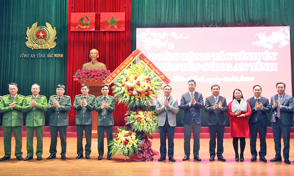 Nhân dịp chuẩn bị đón Tết cổ truyền của dân tộc, thay mặt Tỉnh ủy, HĐND, UBND, Ủy ban MTTQ Việt Nam tỉnh, các đồng chí Phó Bí thư Tỉnh ủy và đoàn công tác tặng hoa, quà, gửi lời chúc mừng năm mới sức khỏe, hạnh phúc đến toàn thể lực lượng cán bộ, chiến sĩ Bộ Chỉ huy quân sự, Công an tỉnh. Chúc các đơn vị trong năm mới hoàn thành xuất sắc nhiệm vụ chính trị được giao, góp phần bảo đảm an ninh trật tự, thúc đẩy kinh tế - xã hội của tỉnh phát triển nhanh, bền vững.