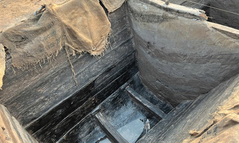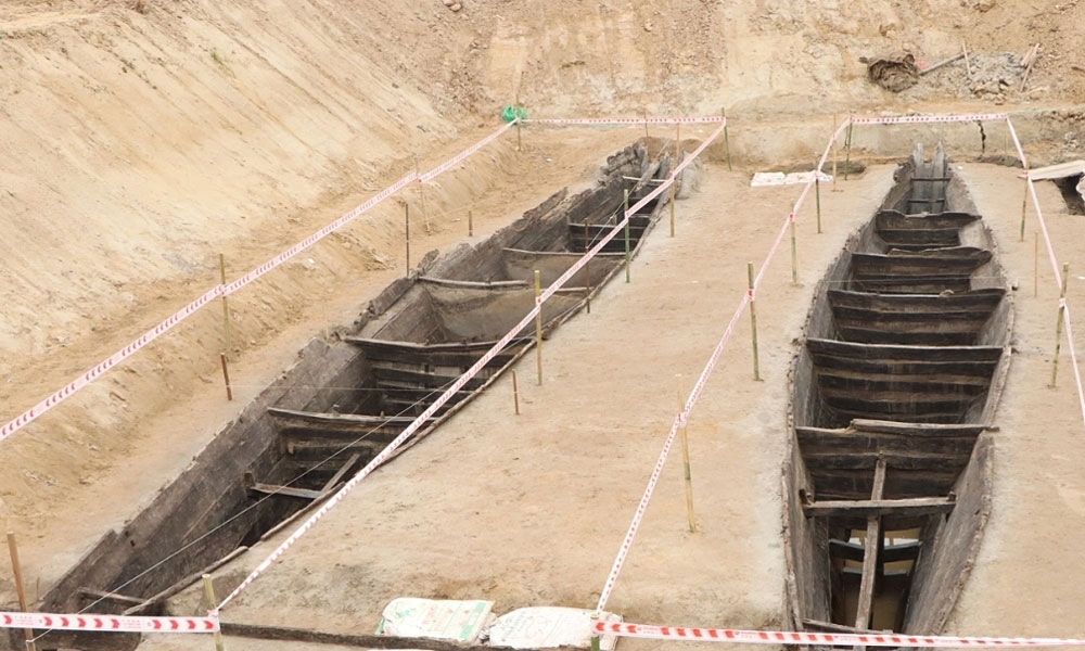 Hình ảnh thuyền cổ phát lộ ở Bắc Ninh hồi tháng 3. |