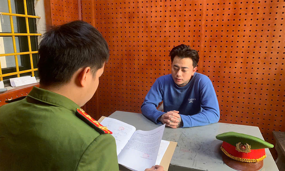 "Nam Birthday" tại cơ quan điều tra. Ảnh: Công an Hưng Yên |