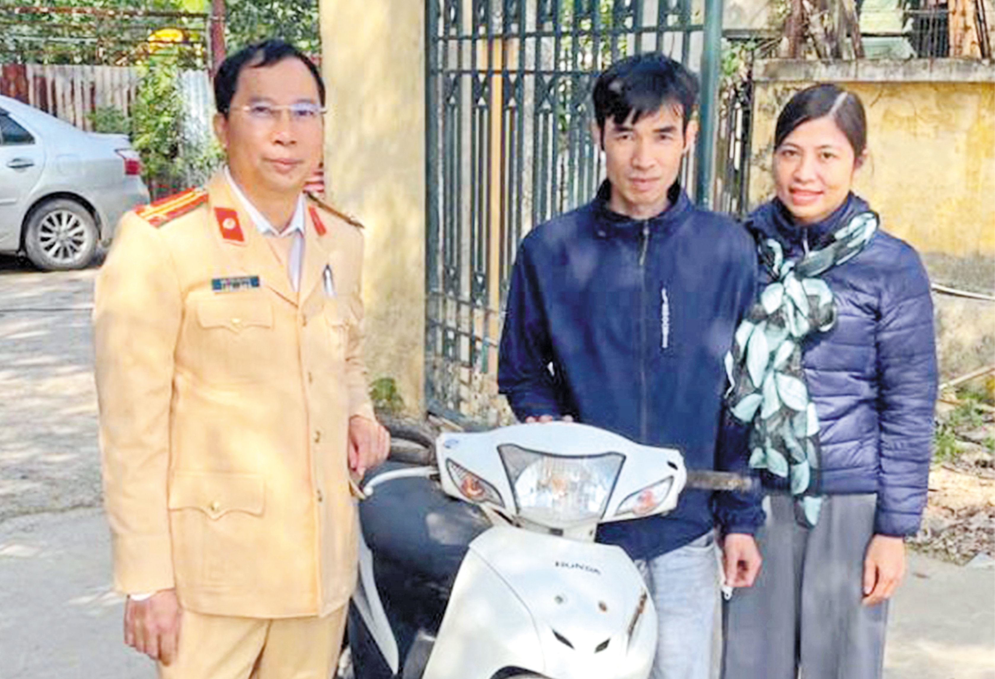 Cán bộ cảnh sát giao thông xác minh, trả lại xe máy cho chị Quách Thị Như Quỳnh, trú tại phường Nhân Hòa. |