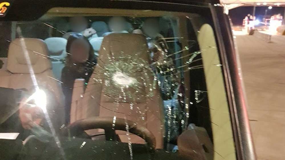 Một chiếc xe bị đối tượng ném đá làm vỡ kính chắn gió. |