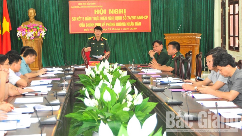 (BGĐT)- Ngày 1/7, Ban Chỉ đạo Phòng không nhân dân (PKND) tỉnh tổ chức Hội nghị sơ kết 5 năm thực hiện Nghị định số 74/2015/NĐ-CP ngày 9/9/2015 của Chính phủ về công tác PKND giai đoạn 2015-2020. Đại tá Lê Văn Thắng, Chỉ huy trưởng Bộ CHQS tỉnh, Phó trưởng Ban Thường trực Ban Chỉ đạo PKND dự và chỉ đạo hội nghị.