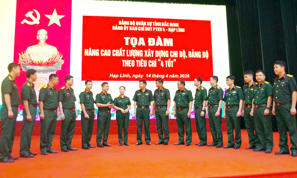 BẮC NINH - Ngày 14/4, Ban Chỉ huy phòng thủ khu vực 4 - Hạp Lĩnh (Bộ Chỉ huy quân sự tỉnh Bắc Ninh) tổ chức tọa đàm nâng cao chất lượng xây dựng chi bộ, đảng bộ theo tiêu chí “4 tốt”.