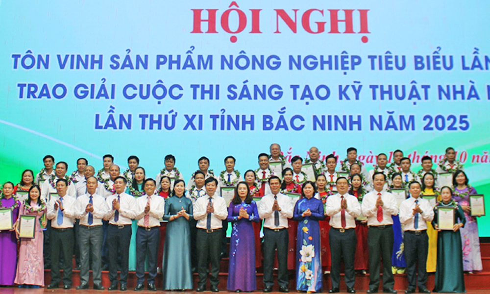 BẮC NINH - Sáng 13/10, Hội Nông dân tỉnh, Sở Nông nghiệp và Môi trường, Sở Công Thương phối hợp tổ chức lễ tôn vinh sản phẩm nông nghiệp tiêu biểu tỉnh Bắc Ninh lần thứ I và trao giải Cuộc thi Sáng tạo Kỹ thuật Nhà nông lần thứ XI.