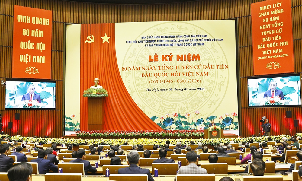 Sáng 6/1, tại Nhà Quốc hội, Ban Chấp hành Trung ương Đảng Cộng sản Việt Nam, Quốc hội, Chủ tịch nước, Chính phủ nước Cộng hòa xã hội chủ nghĩa Việt Nam và Ủy ban Trung ương Mặt trận Tổ quốc Việt Nam tổ chức trọng thể Lễ kỷ niệm cấp quốc gia 80 năm Ngày Tổng tuyển cử đầu tiên bầu Quốc hội Việt Nam (6/1/1946-6/1/2026).
