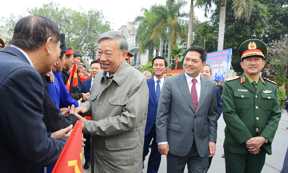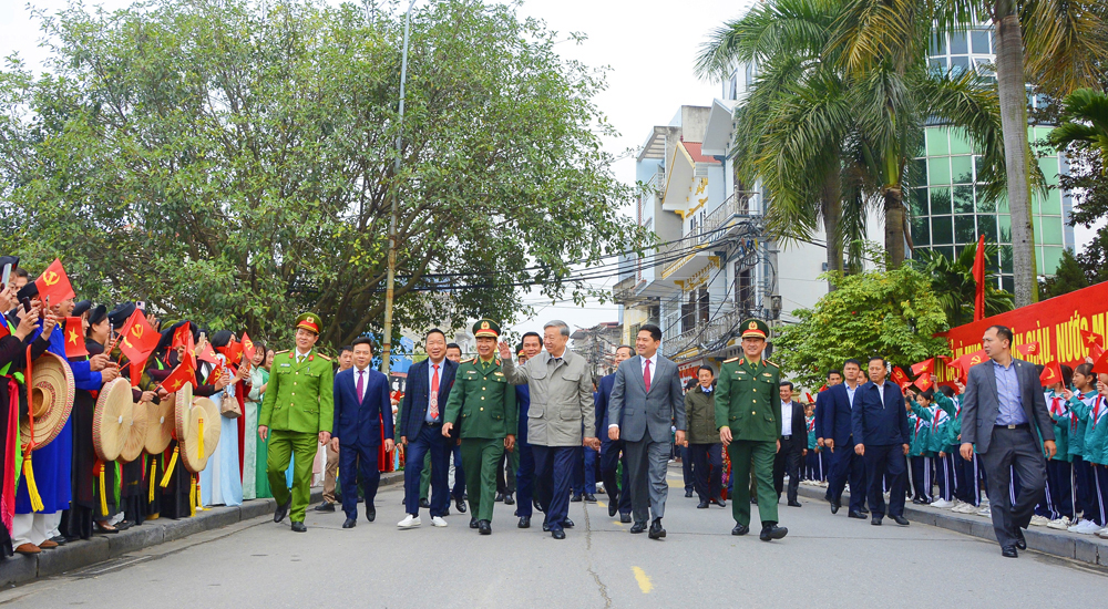 Tổng Bí thư Tô Lâm cùng đoàn đại biểu với Nhân dân phường Phù Khê. |