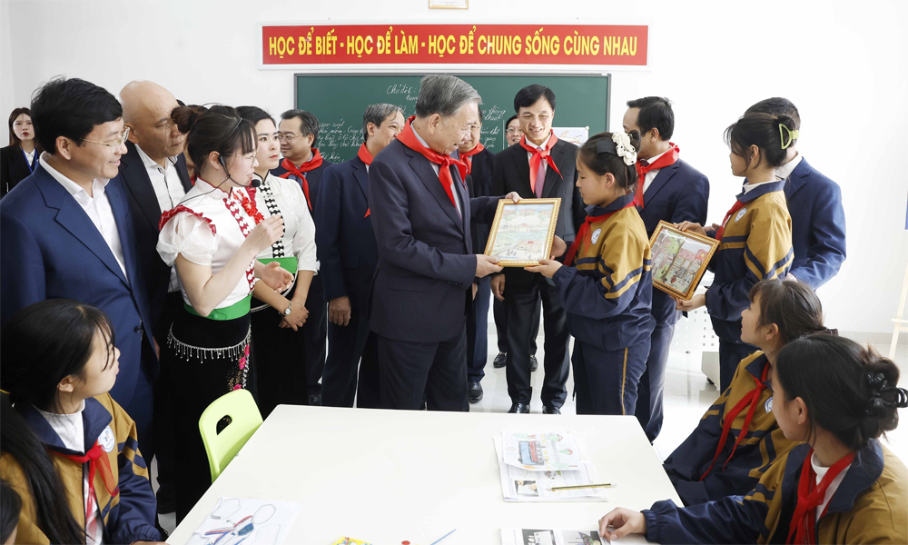 Tổng Bí thư nêu rõ, Đảng và Nhà nước sẽ tiếp tục nghiên cứu, mở rộng mô hình trường phổ thông nội trú liên cấp sang các khu vực không phải biên giới nhưng là vùng đặc biệt khó khăn, vùng có đông đồng bào dân tộc thiểu số, nhằm từng bước thu hẹp khoảng cách phát triển, bảo đảm công bằng trong tiếp cận giáo dục giữa các vùng, miền.
