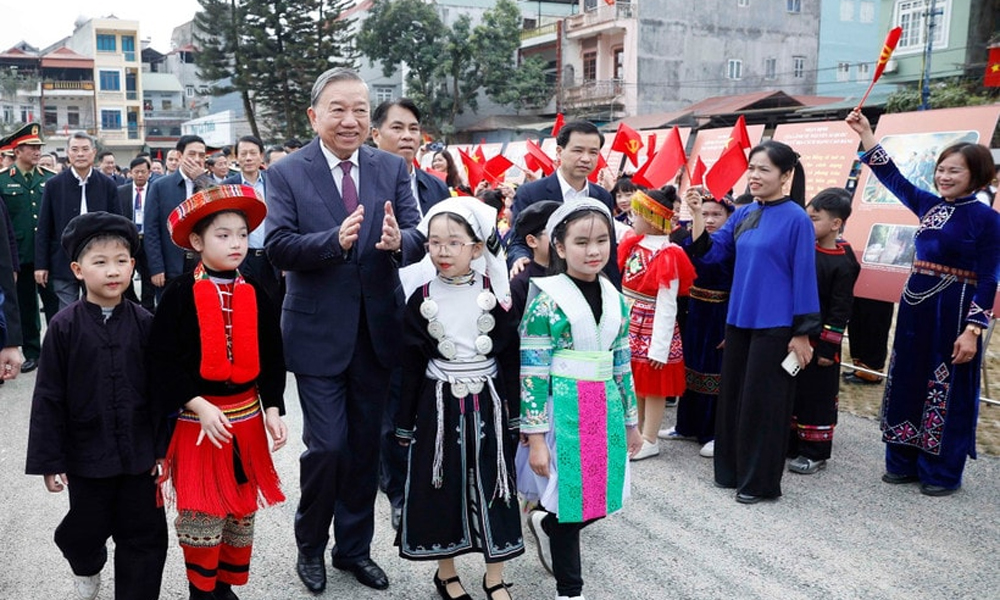Tổng Bí thư Tô Lâm với nhân dân các dân tộc tỉnh Cao Bằng. |