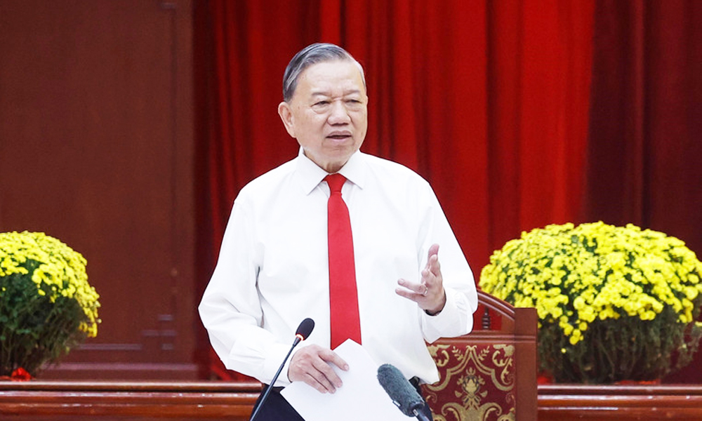 Tổng Bí thư Tô Lâm phát biểu tại buổi gặp mặt các đồng chí nguyên Uỷ viên Trung ương Đảng khu vực phía Nam nhân dịp đón Xuân Bính Ngọ 2026. |