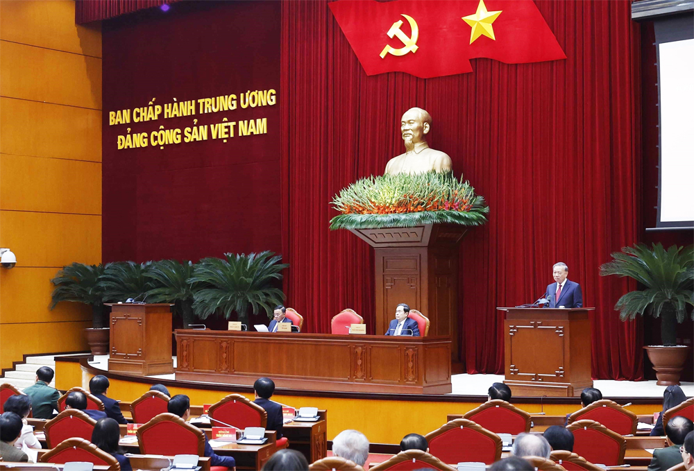 Tại buổi gặp mặt, Tổng Bí thư Tô Lâm nhấn mạnh công tác tổ chức Đại hội XIV của Đảng được triển khai trong một bối cảnh đặc biệt: tình hình thế giới diễn biến nhanh, phức tạp; yêu cầu phát triển đất nước trong giai đoạn mới ngày càng cao, đồng thời phải triển khai nhiều nhiệm vụ rất lớn, rất khó và nhạy cảm, nhất là tinh gọn tổ chức bộ máy, sắp xếp đơn vị hành chính, tổ chức chính quyền địa phương hai cấp.