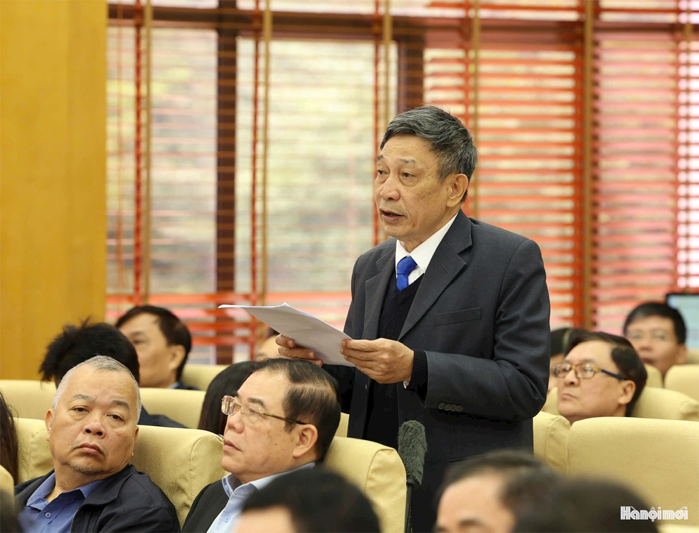 Cử tri phát biểu ý kiến tại hội nghị. (Ảnh: Hànộimới) |