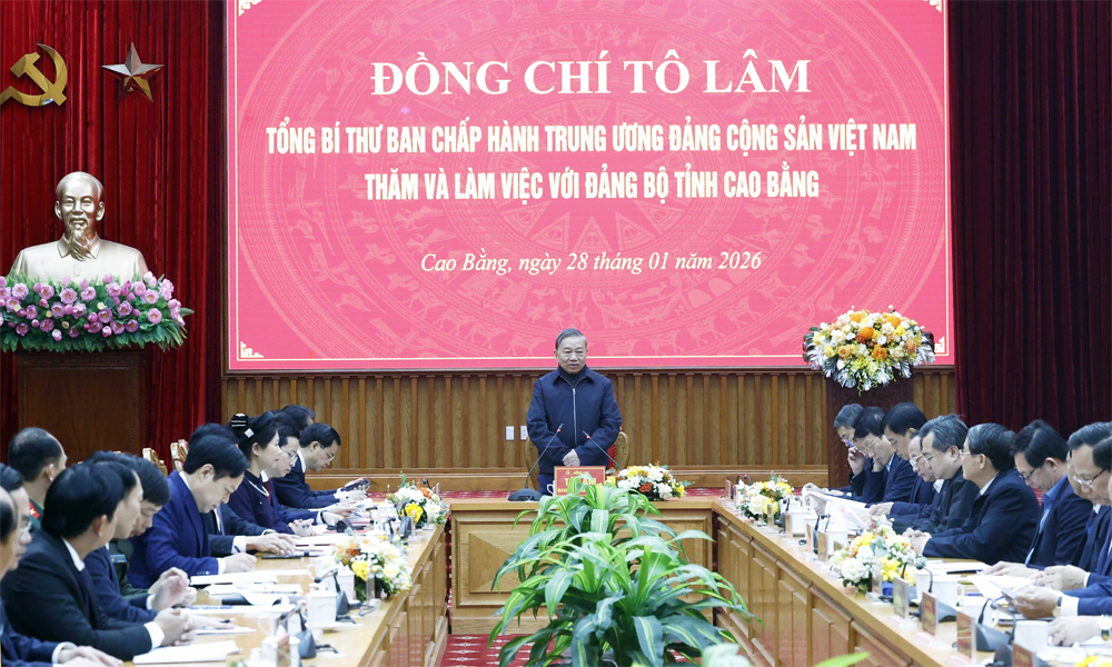 Sáng 28/1, tại Cao Bằng, Tổng Bí thư Tô Lâm và Đoàn công tác của Trung ương đã làm việc với Ban Chấp hành Đảng bộ tỉnh Cao Bằng.