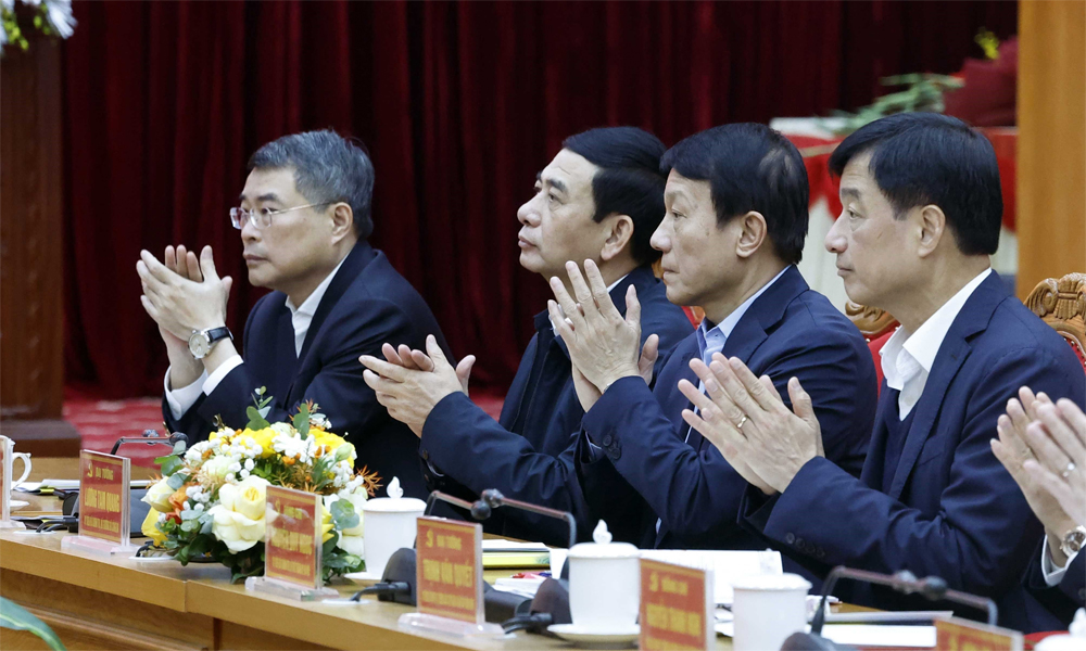 Dự buổi làm việc có các đồng chí Ủy viên Bộ Chính trị: Lê Minh Hưng, Trưởng Ban Tổ chức Trung ương; Đại tướng Phan Văn Giang, Bộ trưởng Quốc phòng; Đại tướng Lương Tam Quang, Bộ trưởng Công an; Nguyễn Duy Ngọc, Bí thư Thành ủy Hà Nội; Trịnh Văn Quyết, Trưởng Ban Tuyên giáo và Dân vận Trung ương; Nguyễn Thanh Nghị, Trưởng Ban Chính sách, Chiến lược Trung ương; các đồng chí Ủy viên Trung ương Đảng, lãnh đạo Chính phủ, Quốc hội, các ban, bộ, ngành Trung ương và địa phương.