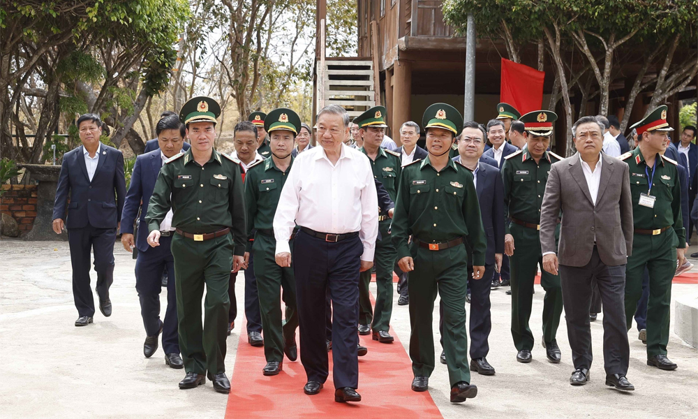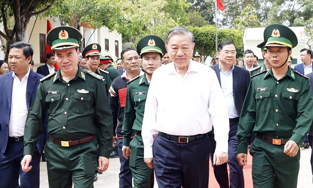 Tổng Bí thư lưu ý, cần tiếp tục bám dân, bám cơ sở, gần dân, hiểu dân, giúp Nhân dân phát triển kinh tế, nâng cao đời sống, giữ gìn bản sắc văn hóa, thực hiện tốt chính sách đối với đồng bào dân tộc thiểu số và các gia đình có hoàn cảnh khó khăn, qua đó củng cố vững chắc niềm tin của Nhân dân đối với Đảng và Nhà nước; chú trọng xây dựng Đảng bộ Đồn Biên phòng trong sạch, vững mạnh; xây dựng đơn vị vững mạnh toàn diện, “mẫu mực, tiêu biểu”.