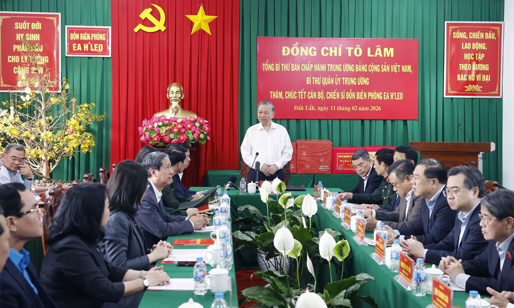 Nhân dịp Tết Nguyên đán Bính Ngọ năm 2026, Tổng Bí thư chúc toàn thể cán bộ, chiến sĩ Đồn Biên phòng Ea H’Leo cùng gia đình sức khỏe, hạnh phúc, an khang, thịnh vượng; tiếp tục đoàn kết, nỗ lực, hoàn thành xuất sắc mọi nhiệm vụ được giao.