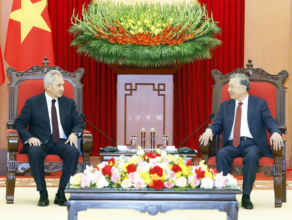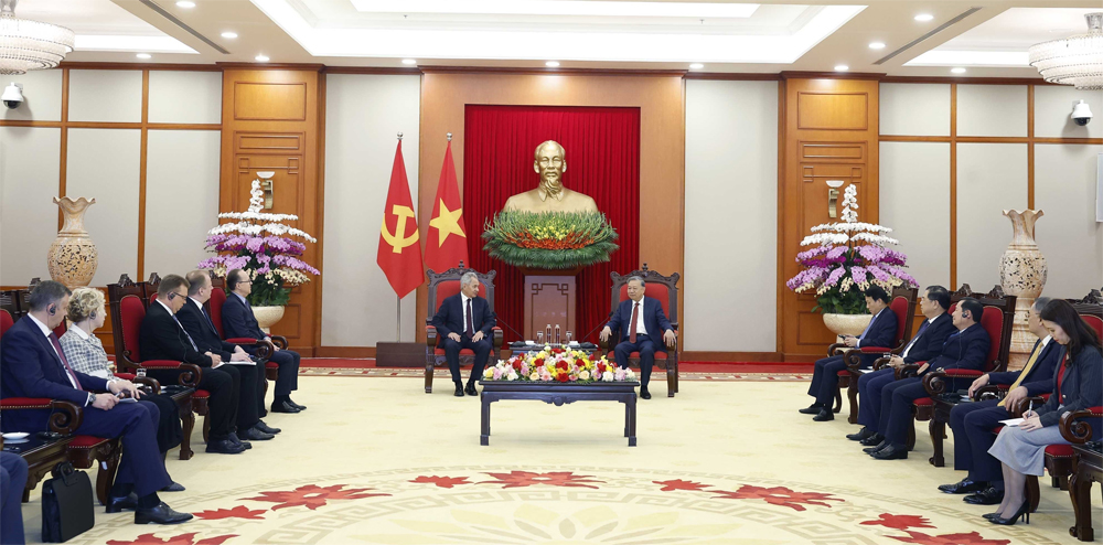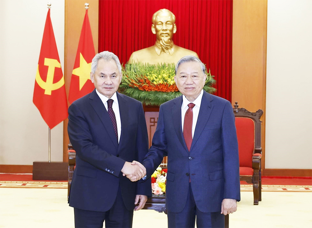 Chào mừng ông Sergey Shoigu và Đoàn đại biểu cấp cao Hội đồng An ninh Nga sang thăm Việt Nam, Tổng Bí thư Tô Lâm khẳng định chuyến thăm lần này có ý nghĩa quan trọng, góp phần tăng cường hơn nữa hợp tác giữa các cơ quan chuyên trách hai nước trong lĩnh vực an ninh, quốc phòng và nhiều lĩnh vực hợp tác chiến lược khác.