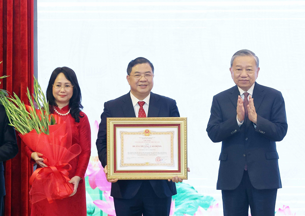 Tổng Bí thư Tô Lâm trao Huân chương Lao động hạng Nhất cho Văn phòng Trung ương Đảng. |