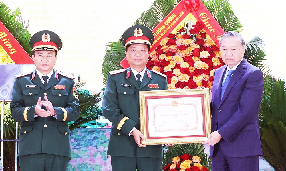 Tổng Bí thư Tô Lâm trao Huân chương Hồ Chí Minh cho đại diện Quân khu 4. |