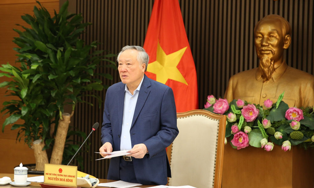 Đồng chí Nguyễn Hòa Bình phát biểu giao nhiệm vụ cho thành viên BCĐ T.Ư và các tỉnh, thành phố. (Ảnh Cổng thông tin điện tử Chính phủ). |