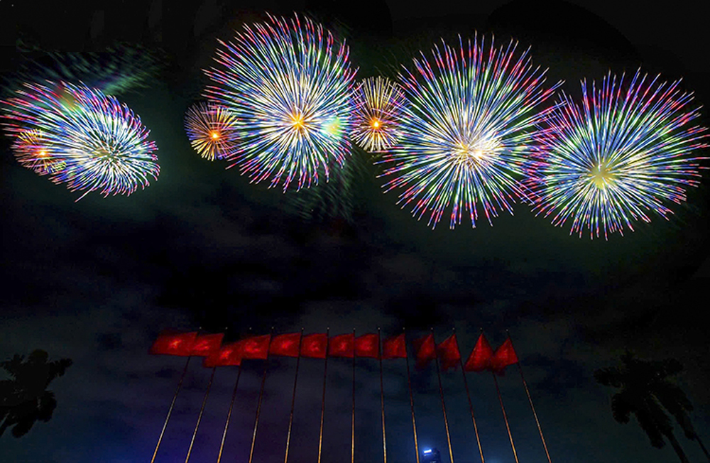Điểm nhấn đặc biệt của chương trình là màn pháo hoa tầm cao kéo dài 15 phút trên nền nhạc các ca khúc giàu cảm xúc, bầu trời khu vực Mỹ Đình rực sáng, trở thành biểu tượng sinh động cho sức mạnh tổng hợp, khát vọng vươn lên và niềm tin son sắt của toàn dân tộc dưới lá cờ vẻ vang của Đảng.