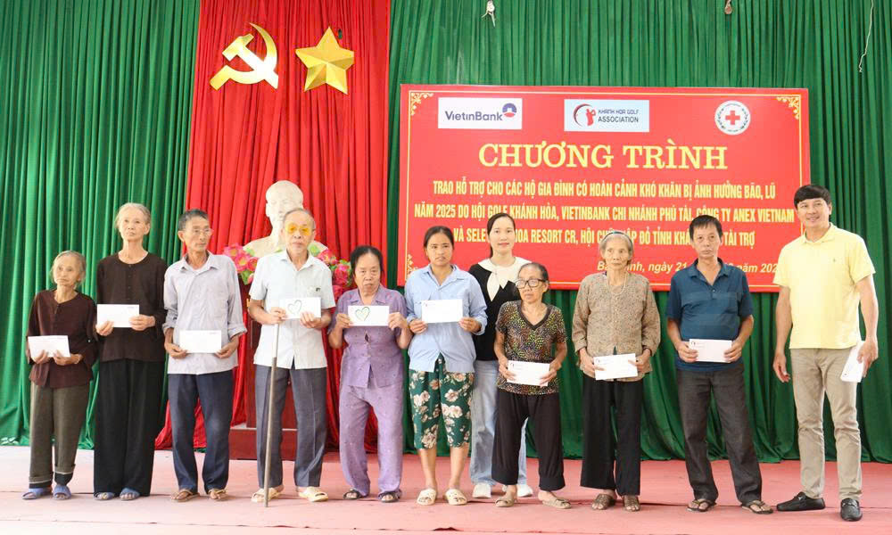 Đoàn công tác đến thăm hỏi, động viên và trao 300 triệu đồng hỗ trợ xã Xuân Cẩm, Mỹ Thái và phường Vân Hà (mỗi địa phương 100 triệu đồng). Số tiền trên do Hội Golf Khánh Hoà, VietinBank Chi nhánh Phú Tài, Công ty Anex Việt Nam và Selectum Noa Resort CR tài trợ thông qua Hội Chữ thập đỏ tỉnh Khánh Hoà.