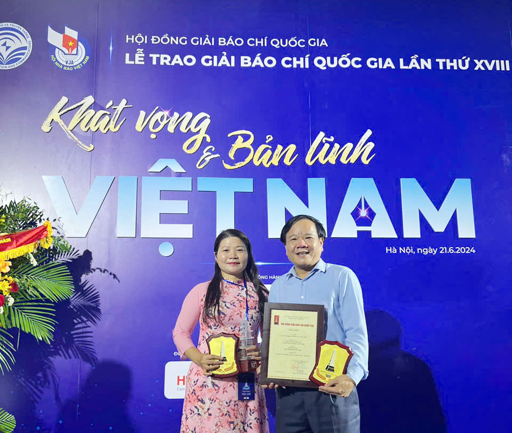 Nhóm tác giả Trịnh Văn Ánh - Trương Thị Thu Phong (Báo Bắc Giang) vinh dự đoạt giải C. |
