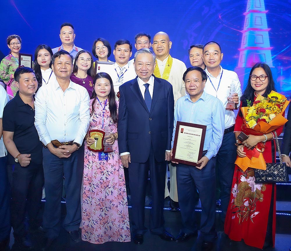 Chủ tịch nước Tô Lâm chúc mừng các tác giả đoạt giải. |